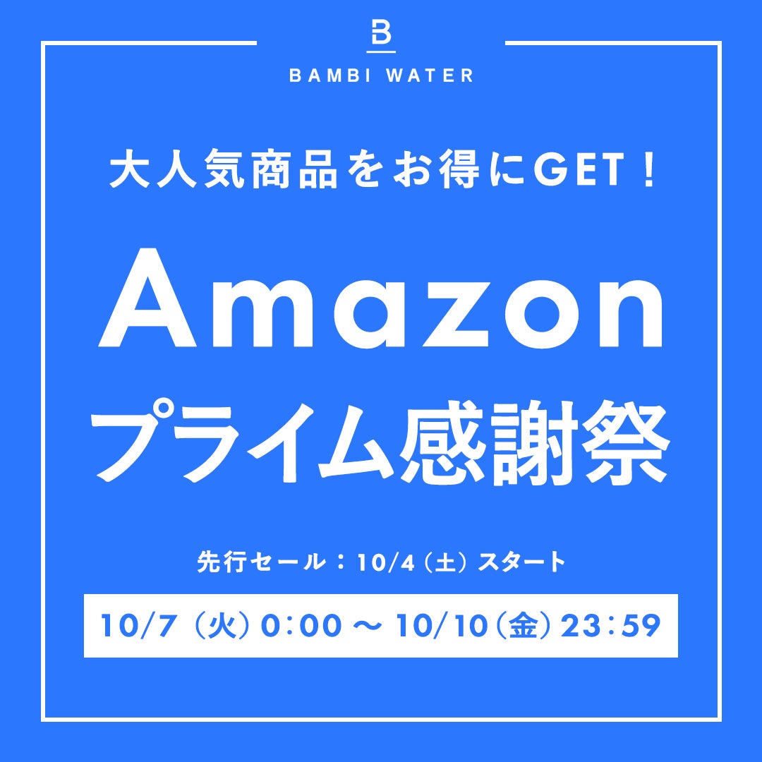 Amazonで開催される「プライム感謝祭」の開催期間中に、Amazon内の「BAMBI WATER公式ストア」にて、対象商品を最大15%オフで販売します。販売は「BAMBI WATER公式ストア」、出荷元が「Amazon.co.jp」である商品がセール対象となります。