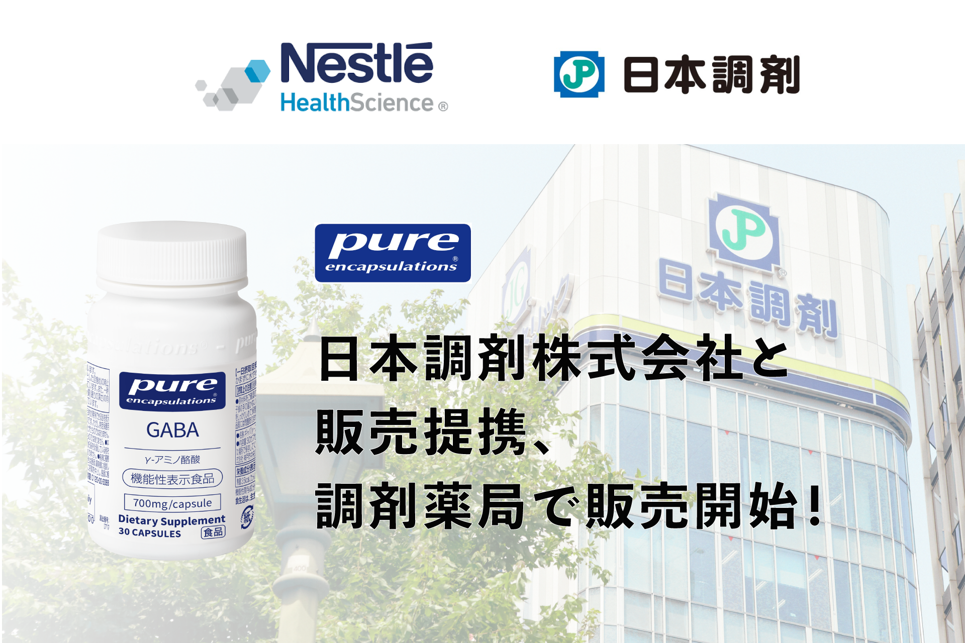 ネスレの「Pure Encapsulations GABA(ピュア エンキャプスレーションズ ギャバ)」、日本調剤株式会社と販売提携により、調剤薬局での店頭・オンラインストア販売を開始!