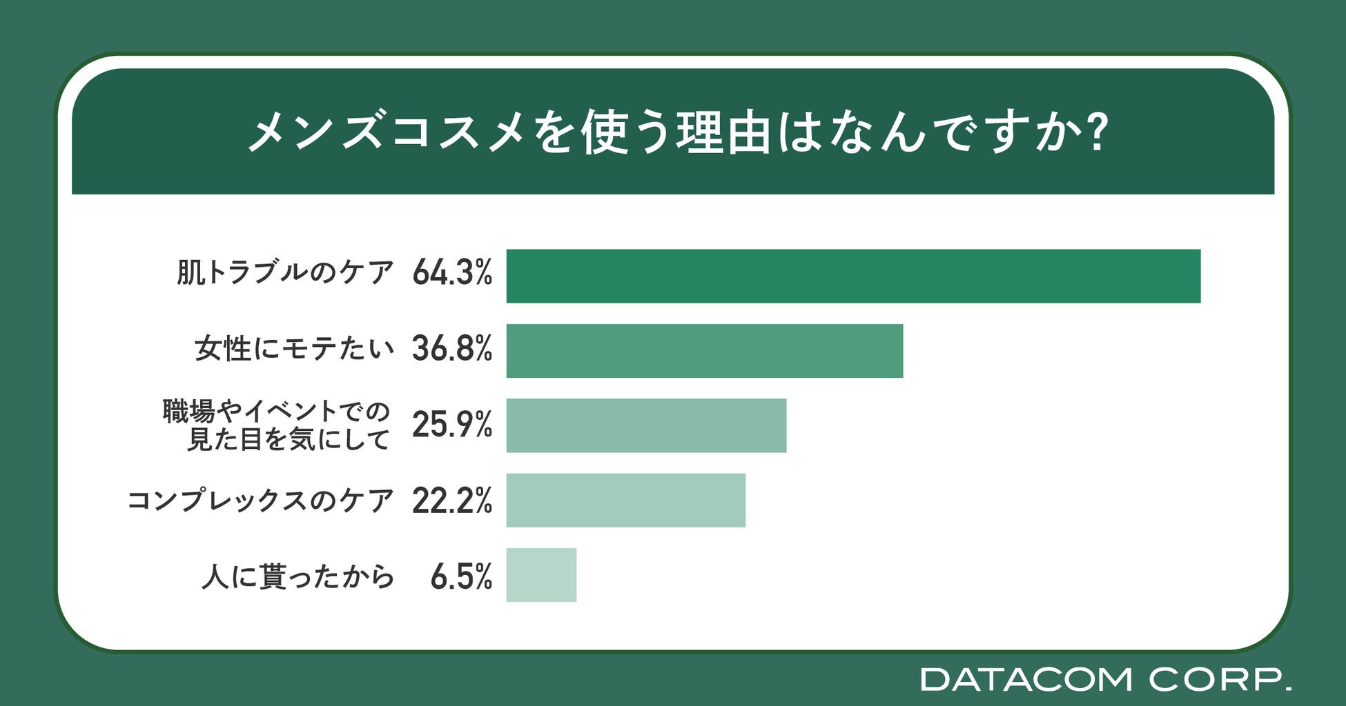 小売業界に特化した商品・顧客分析ソリューションを始めとする、パッケージシステムを開発・提供しているデータコム株式会社(本社:宮城県仙台市、代表取締役:小野寺修一)は、20代~40代男性のメンズコスメ、クリスマスコフレの利用に関するアンケート調査を実施しました。