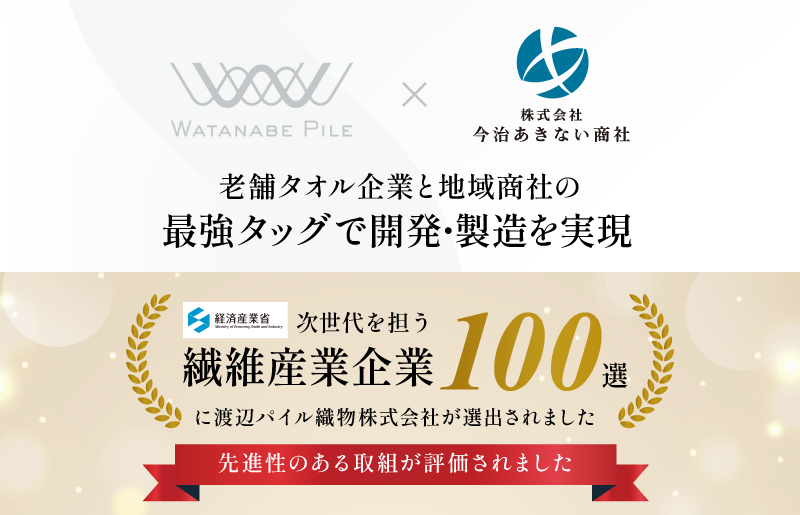 今治の地域商社:㈱今治あきない商社が”次世代を担う繊維企業100選”に選ばれるタオルメーカー「渡辺パイル織物㈱」とコラボ!肌触りの良さにこだわった「ふるさと納税限定 上質無撚糸タオル」を開発しました。