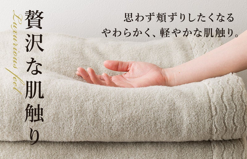 こだわりの素材と製法により、高い吸水性、柔らかな肌触り、毛羽落ちの少なさを実現。