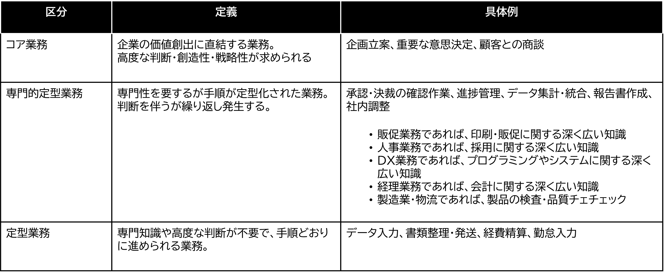 本調査から、製造・物流業界では経営層が仕組み化やAI導入を強く志向する一方で、専門的定型業務が特定の人に集中している実態が明らかになりました。