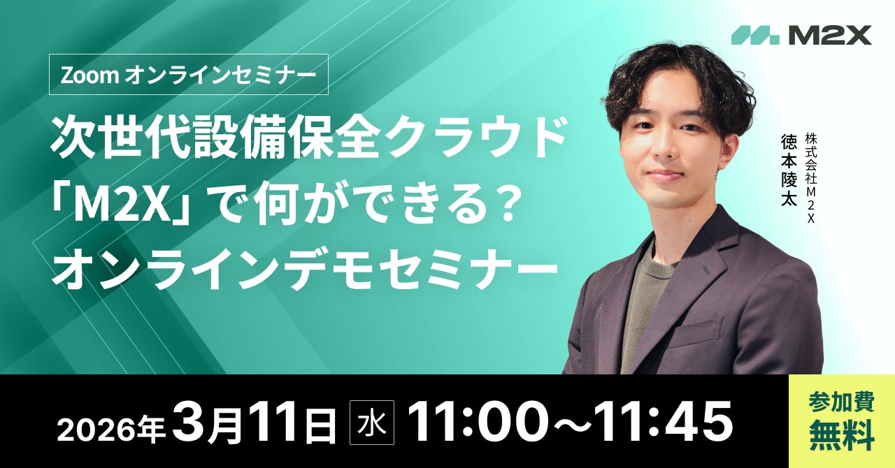 株式会社M2X(本社:東京都中央区、代表取締役:岡部晋太郎)(以下「当社」)は、「次世代設備保全クラウド「M2X」で何ができる?オンラインデモセミナー」と題した無料オンラインセミナーを開催いたします。