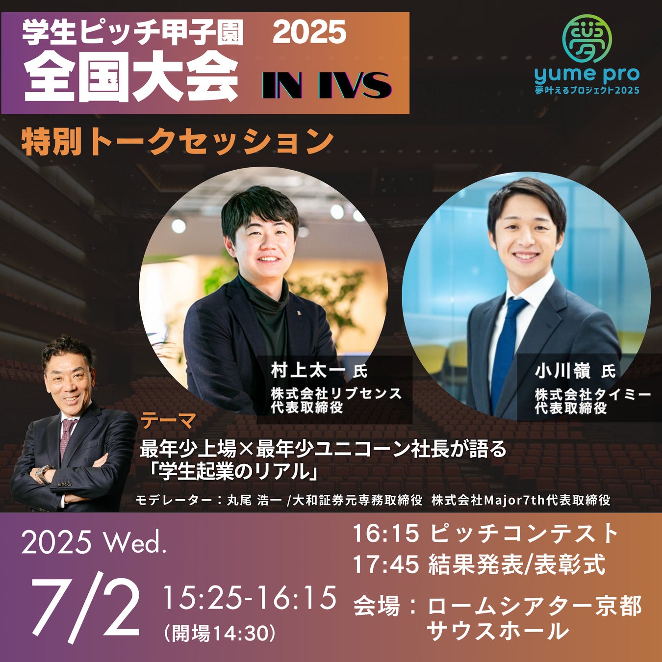 田村淳氏・株式会社タイミー 代表取締役 小川嶺氏ら多様な業界のトップランナーが審査員に集結!国内最大級の学生ピッチ「学生ピッチ甲子園2025」決勝、IVS 2025 KYOTOで開催終了