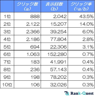 https://rank-quest.jp/column/column/how-to-seo/ 【SEO対策】で検索順位No.1を獲得した(注1)ランクエストが1~10位の検索順位毎のクリック率を解説