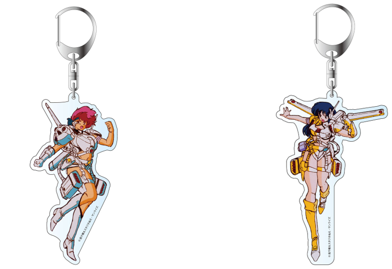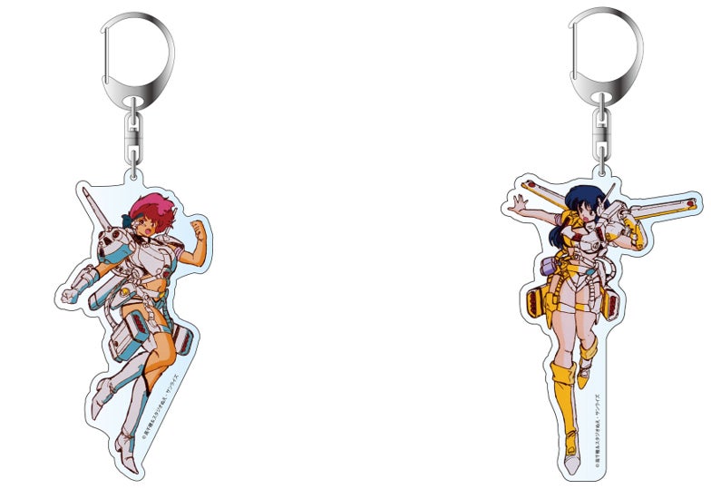 「ダーティペア」より重武装システム、シヴァを装着したケイとユリを大きめサイズのキーホルダーで商品化!