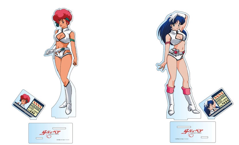 ケイとユリのデカキーホルダーやOVAコスチュームのアクリルフィギュア、「ダーティペアの大勝負 ノーランディアの謎」のアクリルアートといった新作グッズが登場いたします。