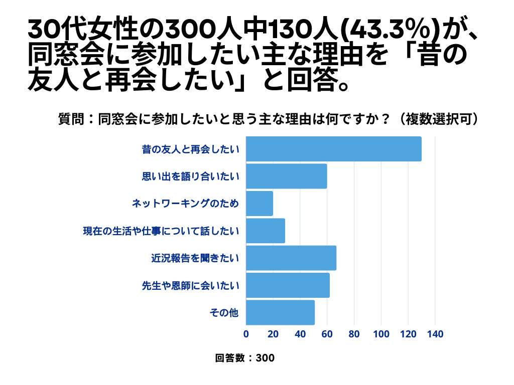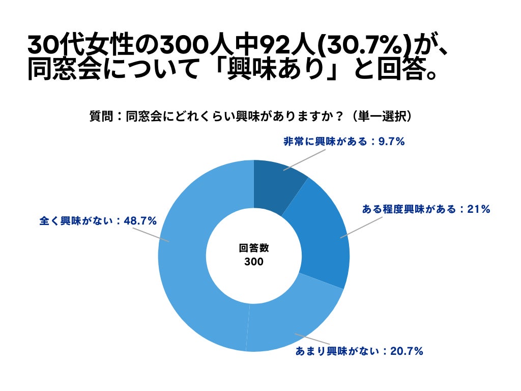 30代女性の300人中92人(30.7%)が、同窓会について「興味あり」と回答【同窓会に関するアンケート】
