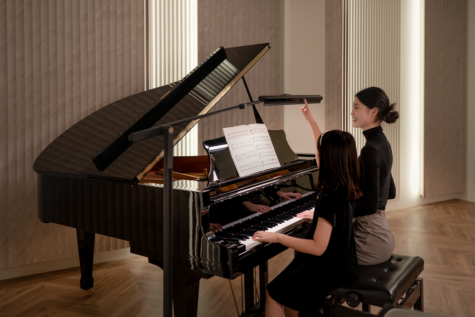 自動調光機能と着席検知機能を備え、使用環境に応じて明るさを自動で最適化するとともに、電源のオン・オフも自動化。さらに、コンサートホール基準を満たす高照度設計とANSI規格に準拠した明るさ・色温度調整により、演奏やレッスン、創作などあらゆるシーンに適した光環境を実現します。