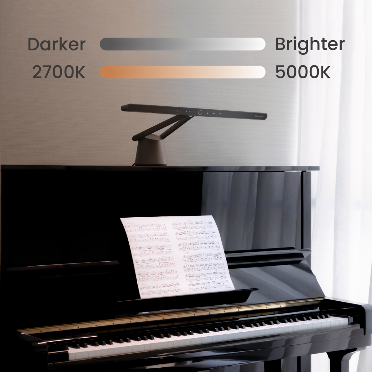 コンサートホールの照明基準を満たす高照度設計により、楽譜面で500ルクス以上、照度比1.5の均一な明るさと、88鍵盤すべてに300ルクス以上の光を確保。さらに両モデルともにANSI規格に準拠した明るさ・色温度調整機能を搭載し、PianoLight®は15段階/6段階(2700K-5000K)、PianoLight® Grandは14段階/7段階(2700K~5300K)に対応し、演奏やレッスンなどシーンに応じた照明環境を実現します。