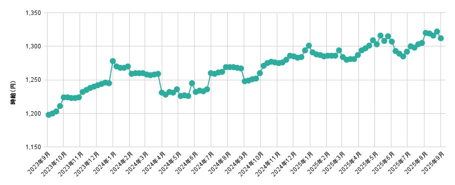 全国アルバイト・パート平均時給は「1,312円」【2025年9月度 アルバイト・パート 平均時給・求人数レポート】