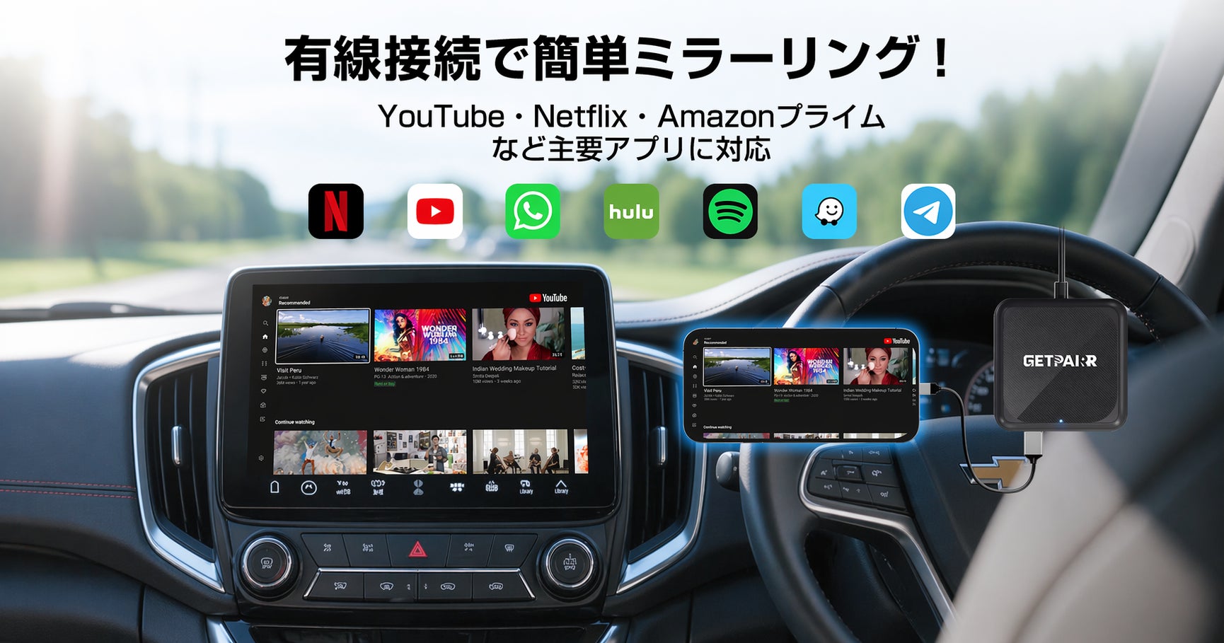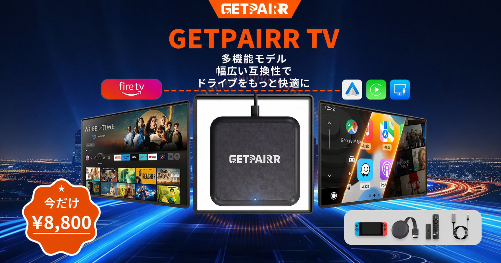 配線に縛られない車内時間へ。ワイヤレスCarPlay/Android Auto・HDMI入力・Type-C有線ミラーリング対応の「GetPairr TV」をAmazon.co.jpで販売中