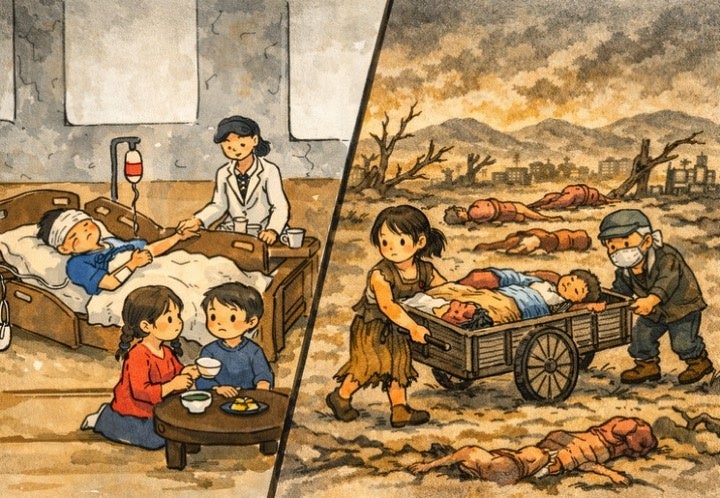 絵本の文章は、なかよし学園が作成し、長崎原爆資料館に事実誤認がないか確認を取りながら整えました。両校の生徒たちは、それぞれの場面に合わせてイラストを制作。なかよし学園は、それらの作品をAIも活用しながらテイストや構図を丁寧に統合し、一冊の絵本として完成させました。