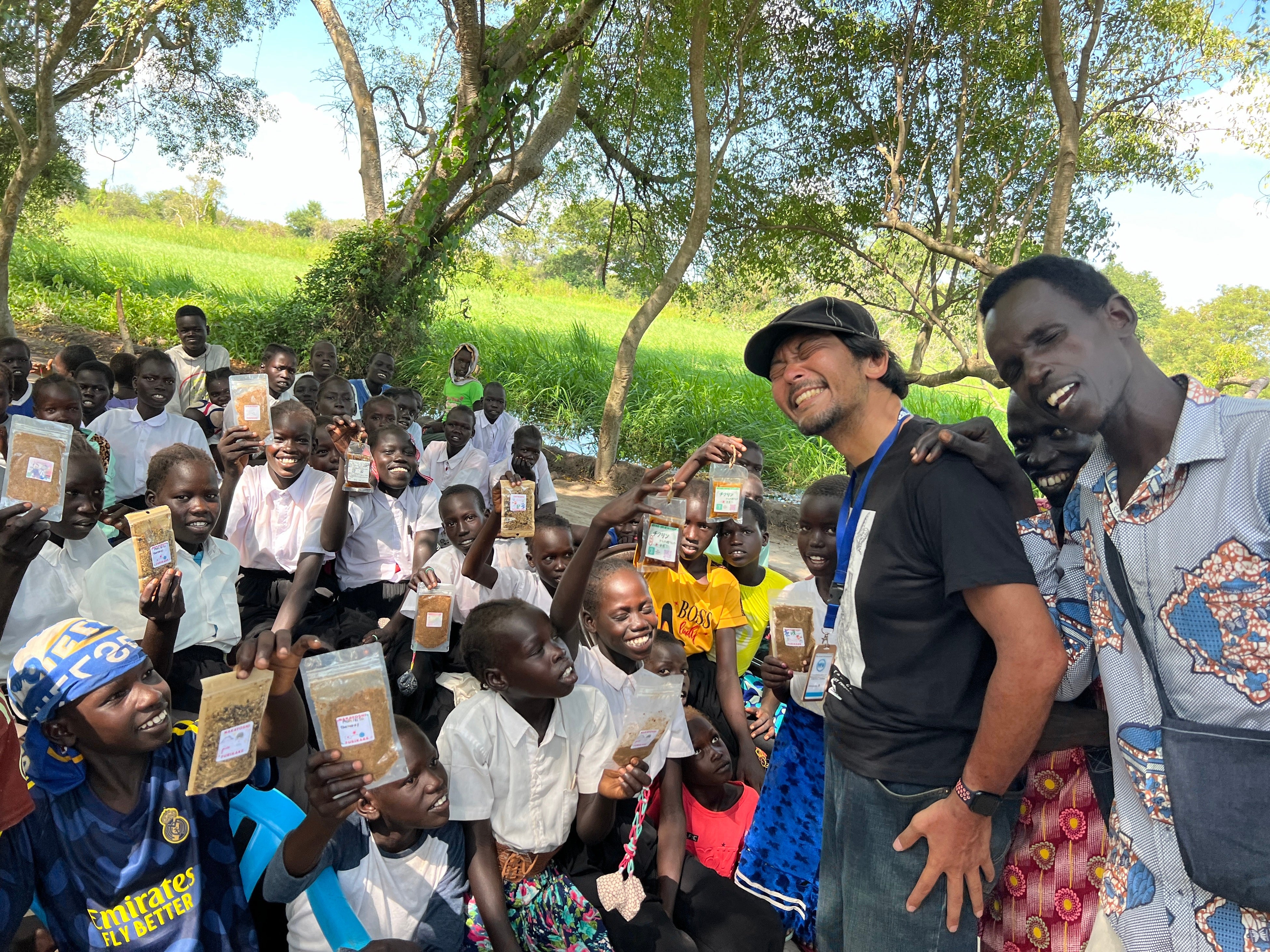 また、壱岐市立筒城小学校でも講演を行い、『はじめてのヒロシマ』を翻訳した児童たちの活動が、海を越えて世界の平和づくりにつながっていることを報告しました。筒城小学校の児童たちは、2024年度なかよし学園とともに「なかよしふりかけ」の制作にも参加し、ステッカーや手紙などに思いを込めて、南スーダンをはじめ食糧支援を必要とする地域へ届ける活動にも取り組んできました。
