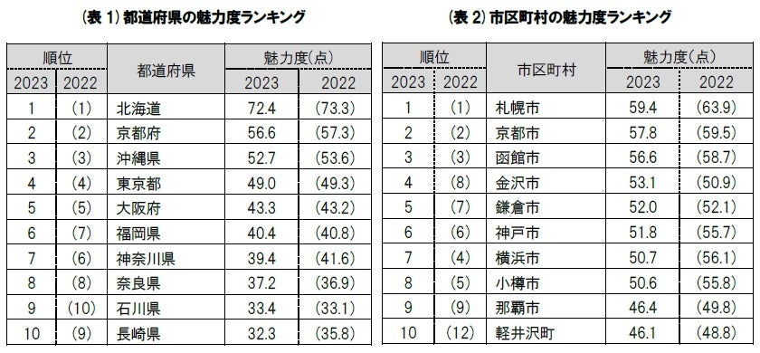第18回「地域ブランド調査2023」北海道が15年連続1位。札幌市は3年連続9度目の1位に