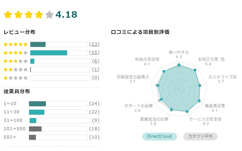 今回「DirectCloud」が受賞したオンラインストレージ部門の「Good Service」は「BOXIL SaaS」上に投稿された口コミを対象に、各カテゴリで総得点の高いサービスに対して、「料金の妥当性No.1」は「BOXIL SaaS」上に投稿された「口コミによるサービス評価」9項目を対象に、各カテゴリ、各項目において一定の基準を満たした上で、最も高い平均点を獲得したサービスに対して付与されるものです。また、2023年6月の「BOXIL SaaS AWARD Summer 2023」から6期連続の受賞となります。