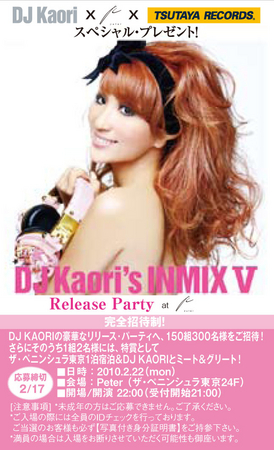 【TSUTAYA限定】「DJ KAORI'S INMIX 5」リリース記念 豪華リリースパーティ150組300名様をご招待!