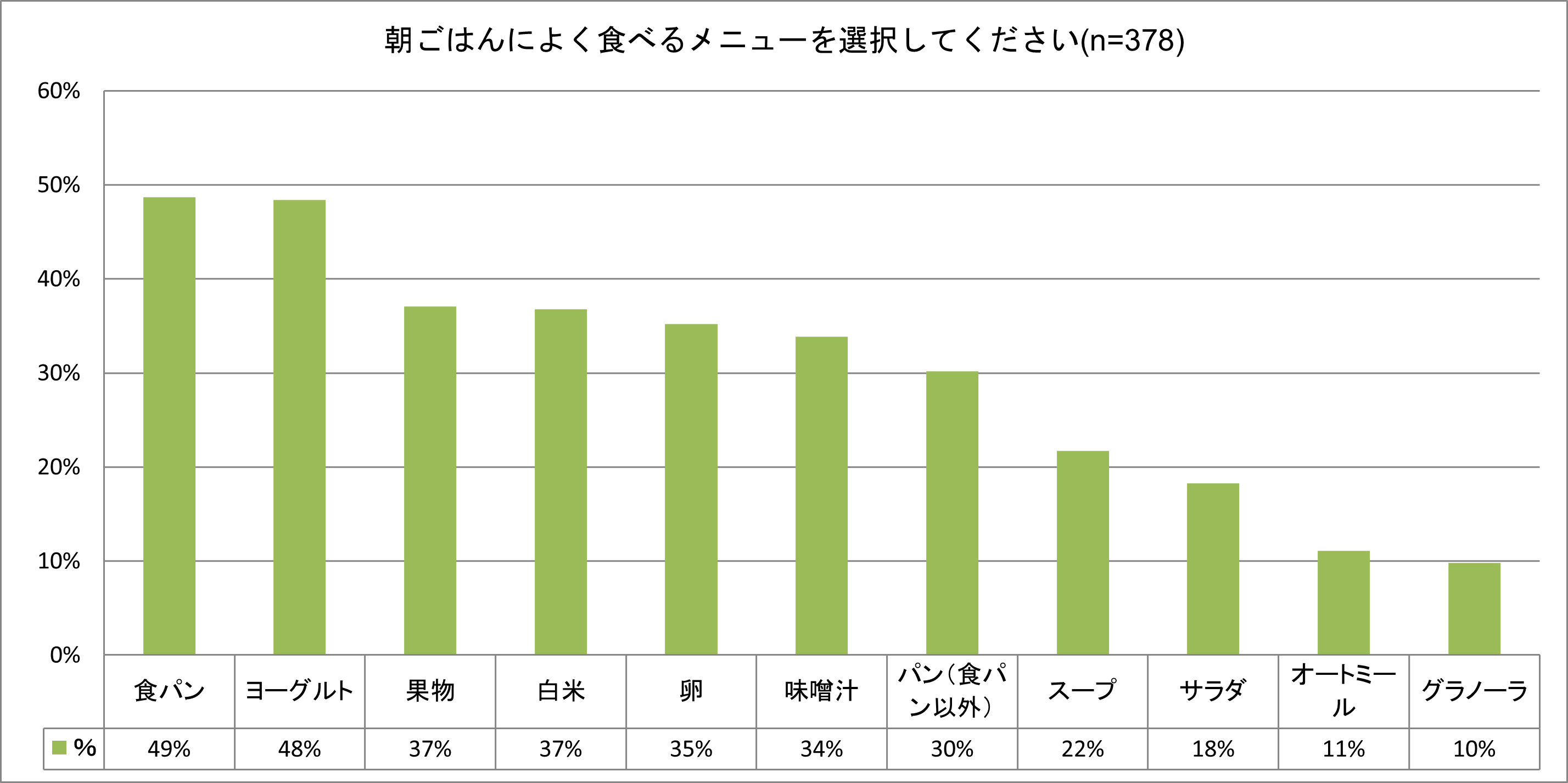 (1)朝ごはんのメニュー1位は「食パン」
