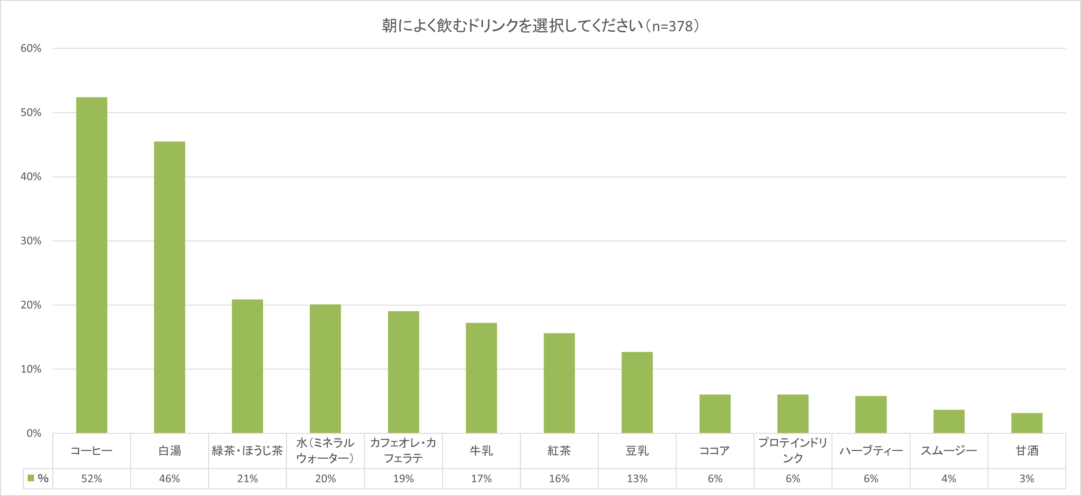 ・朝によく飲むドリンク、「白湯」が約50%
