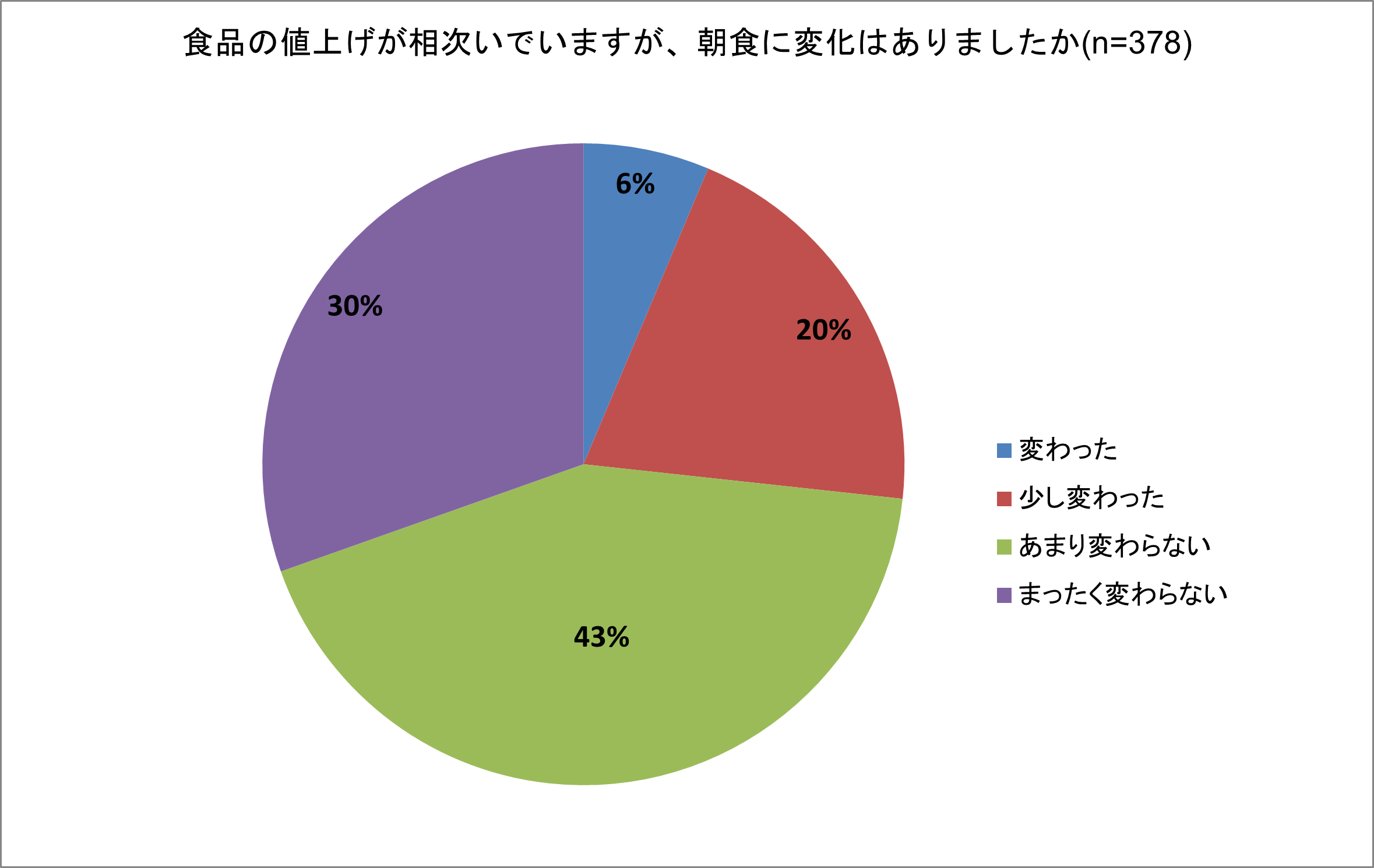 ・食品の値上げによる朝食の変化、約3割が「変化があった」