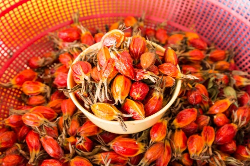 代表的な抗シワ原料であるレチノールは、動物の体内ではβ-カロテンが代謝されることでつくられます。しかし、植物ではβ-カロテンが代謝されると、近年健康食品の分野で注目されているクロセチン類に変換されます*3。そして私たちの知る限り、鳥類による種子拡散に活用するためにクロセチン類を大量に蓄積している植物が、くちなし(果実)なのです。くちなしに含まれ、抗シワ作用を含む広範な生理活性が期待されるクロセチンに着目しました*4。