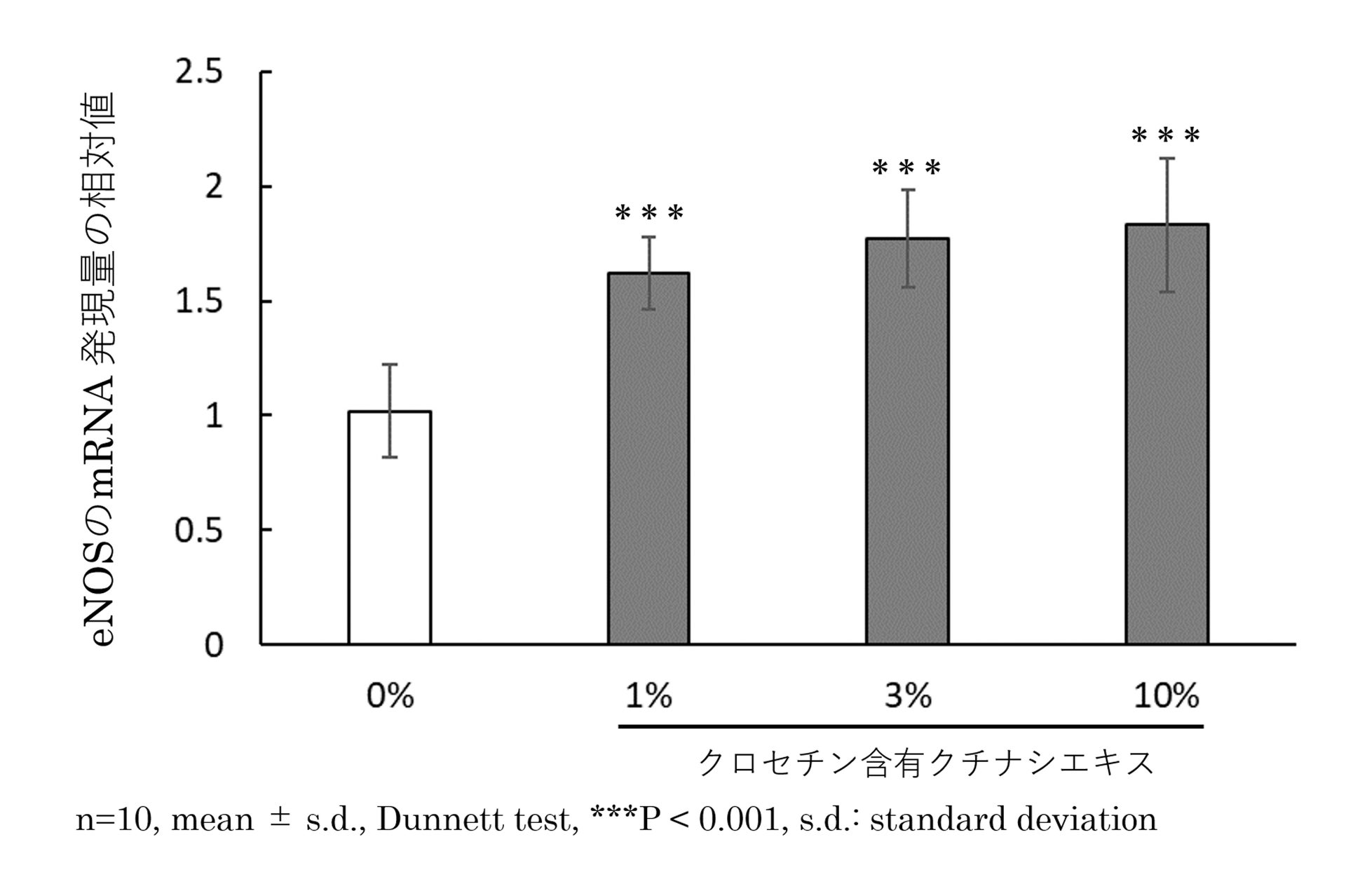 クロセチンは血管拡張因子の一つである内皮型一酸化窒素合成酵素(eNOS)遺伝子の発現を増加させました。