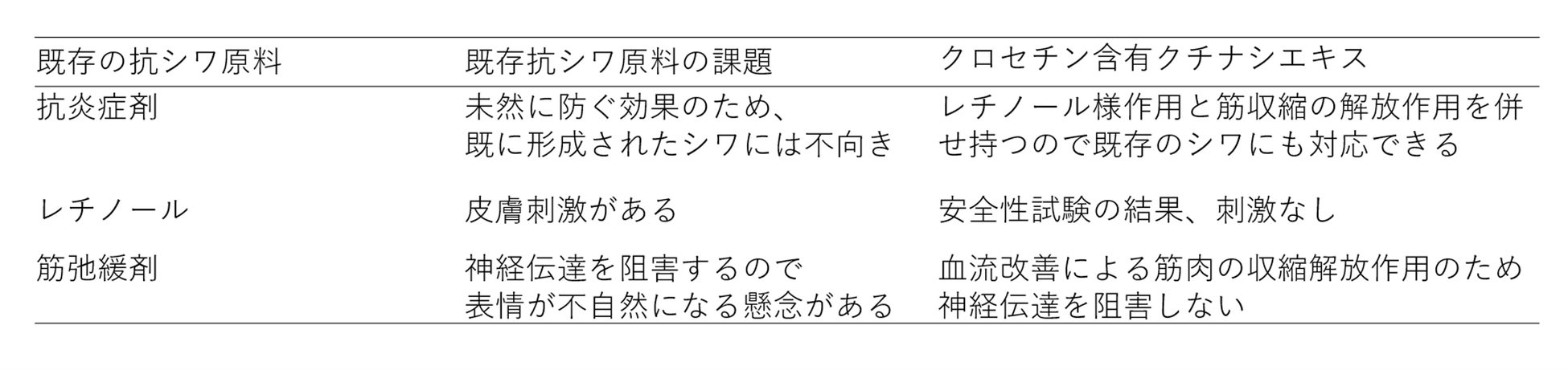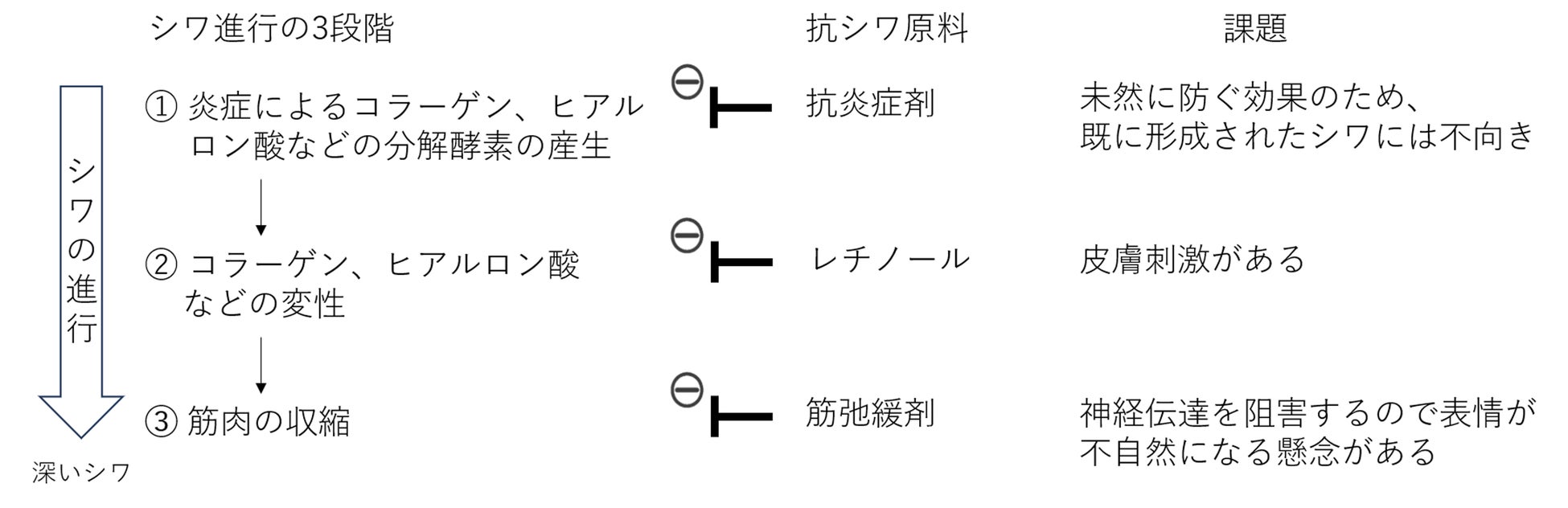 *2 シワ進行の3段階と各段階に対応する既存抗シワ原料の課題