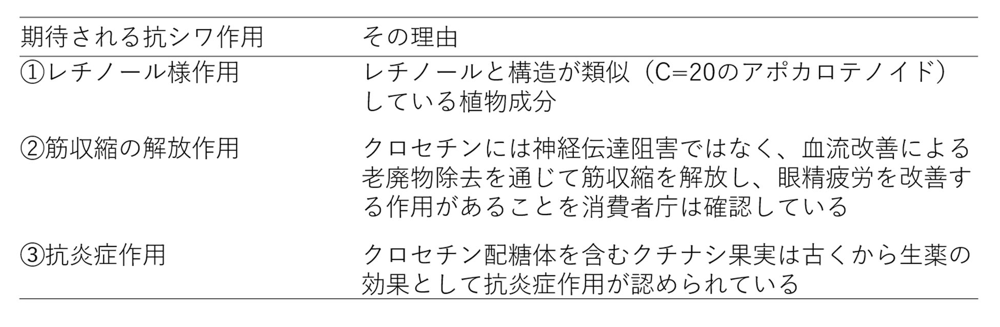 *4 くちなしに含まれるクロセチンに期待される抗シワ作用