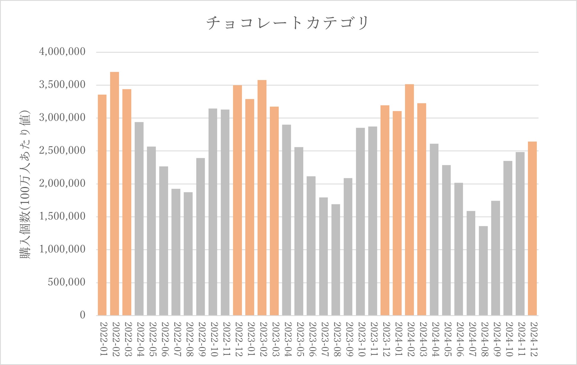 チョコレートの購入は12月~3月頃がピークに