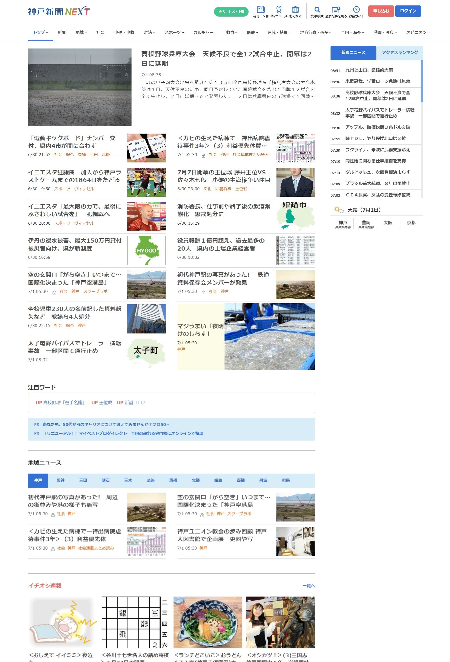 神戸新聞社(本社:神戸市中央区、代表取締役社長:高梨柳太郎)は2023年7月1日朝、電子版「神戸新聞NEXT」(https://www.kobe-np.co.jp/)を大幅にリニューアル。「『地元・兵庫』のことをもっと考えたくなる、『わたしオリジナル』のニュースメディア」をコンセプトに、もっと身近で、もっときめ細かな情報を発信します。