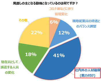 見直しの主となる動機となっているのは、社内外での人材確保