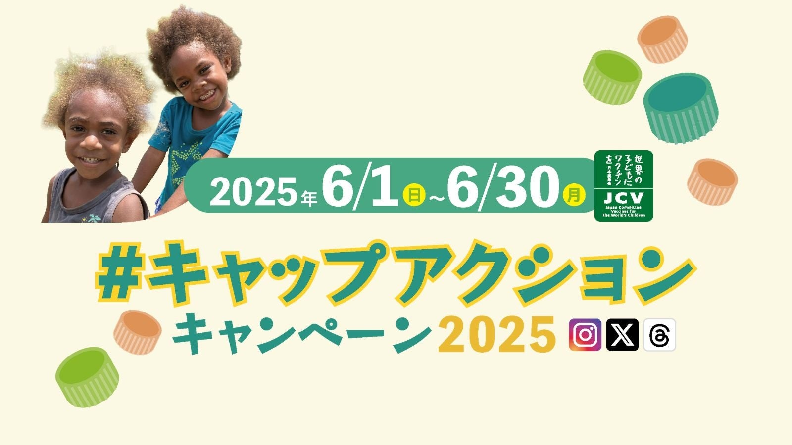 環境省が定める6月の環境月間。「認定NPO法人 世界の子どもにワクチンを 日本委員会」(以下JCV)では、同期間を「ペットボトルキャップ回収月間」と定め、ペットボトルキャップの回収リサイクルをさらに推進するため、SNSへの投稿を通して、誰もが環境保全や子どもワクチン支援活動に参加できる「#キャップアクション」キャンペーンを、今年も環境月間の6月に1カ月間、開催いたします。