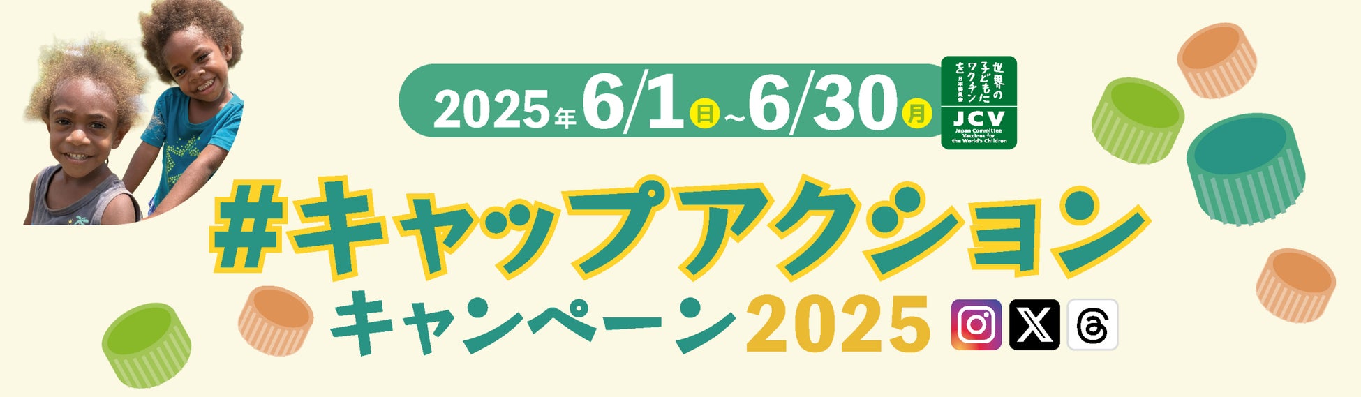 ●参加方法: 期間中にInstagram、X、Threadsでペットボトルキャップにまつわる写真や動画に「#キャップアクション」を付けて投稿すると、1投稿につき1人分のワクチンがJCVを通して支援国(ミャンマー、ラオス、ブータン、バヌアツ)の子ども達に寄付されます。