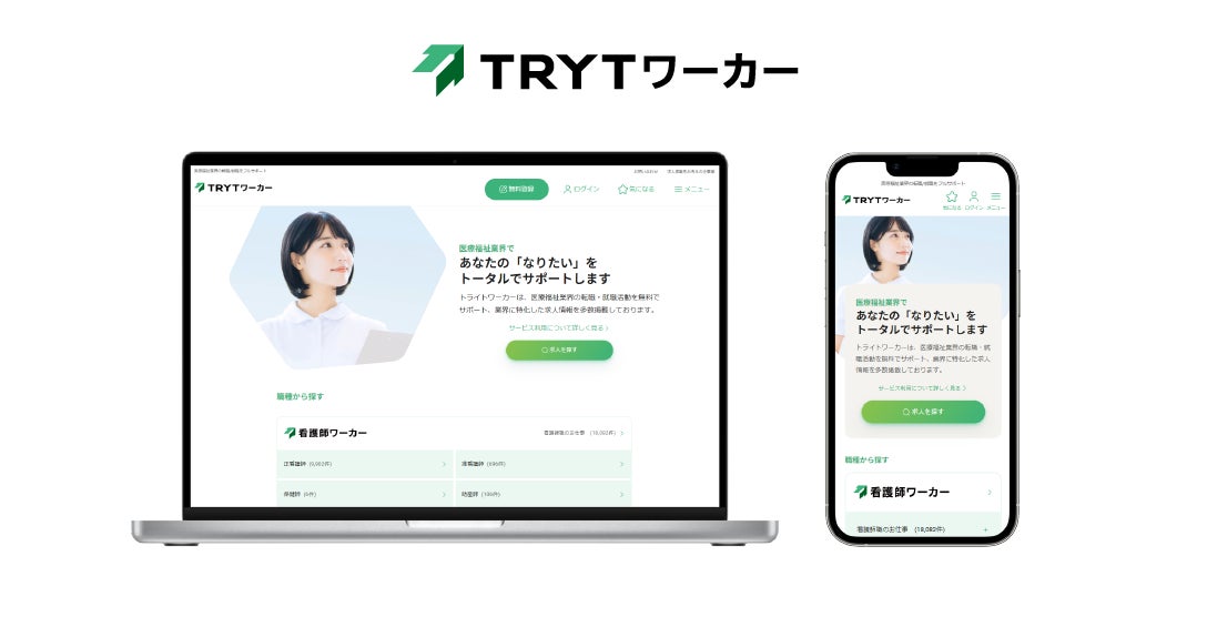 医療福祉業界の求職者向けポータルサイト『TRYTワーカー』、職種別求人サイトとの統合により利便性を向上