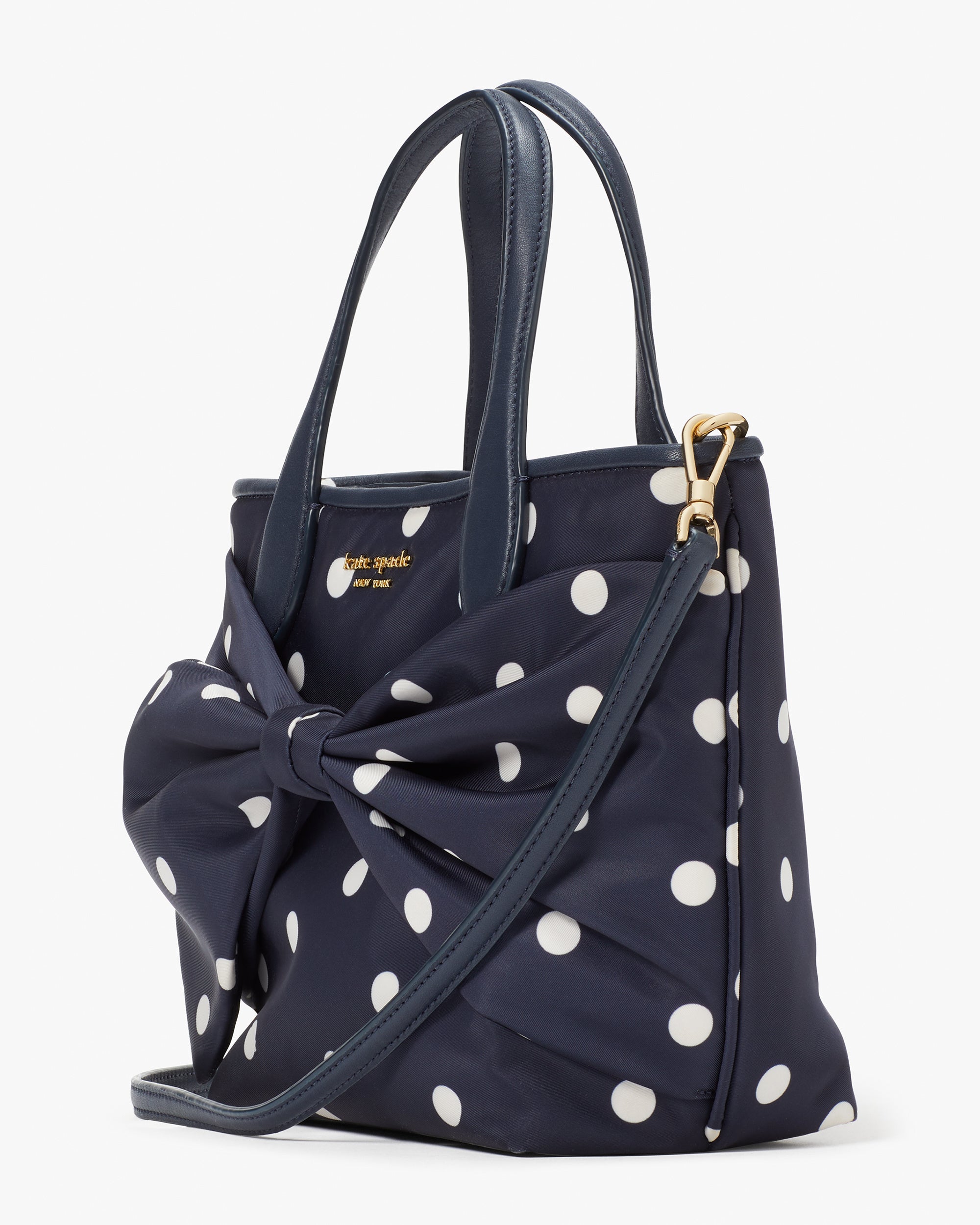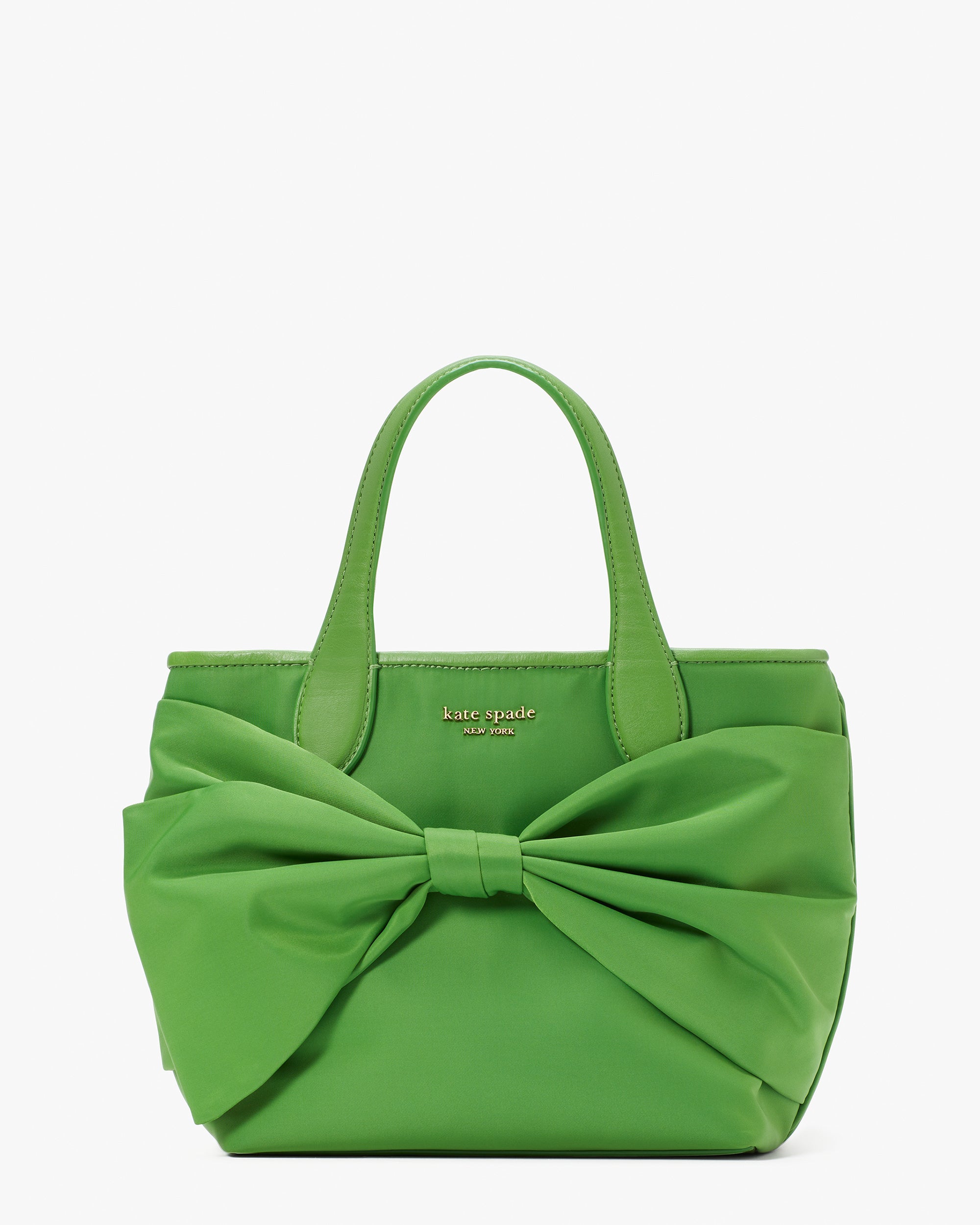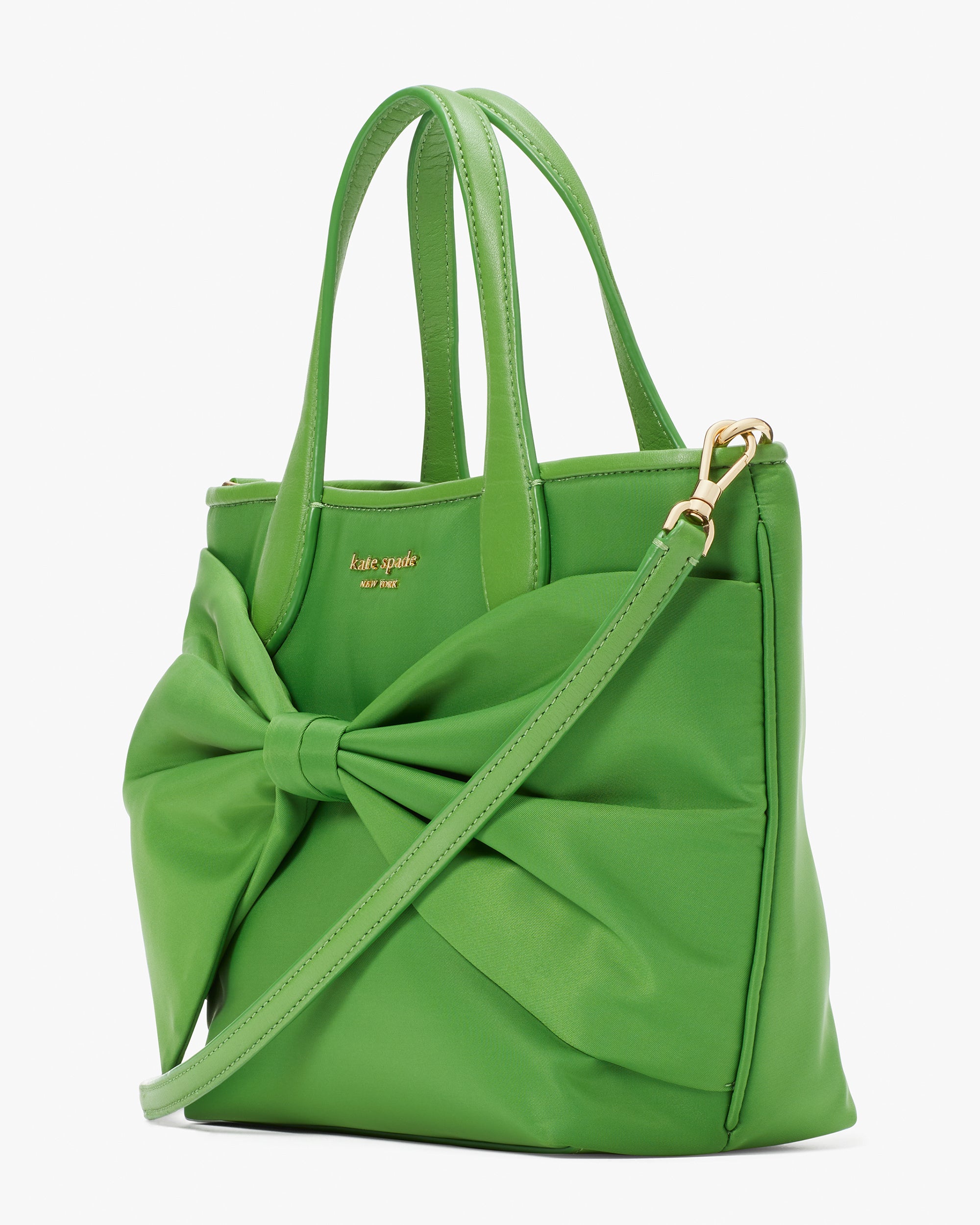 今年10周年を迎える「オン・パーパス」 コレクションからは、summer 2023コレクションには、表地に100%のリサイクルナイロン、裏地に100%リサイクルポリエステルを用い、ケイト・スペードらしい大きなボウをあしらったデザインのトートバッグが登場します。ブランドカラーのケイト・スペード グリーンと、ポルカドットの2色で展開されるトートバッグは、軽量で、防犯面も安心なジップクロージャーデザイン、そして、取り外し可能なクロスボディストラップが付属し、内側には整理整頓がしやすいスリップポケットとジップポケットを備え、デザイン性と機能性の両方を兼ね備えています。そしてまた、「オン・パーパス」コレクションのアイテムだけの、製作者の手書きのサインが入った特別なタグが付いてきます。