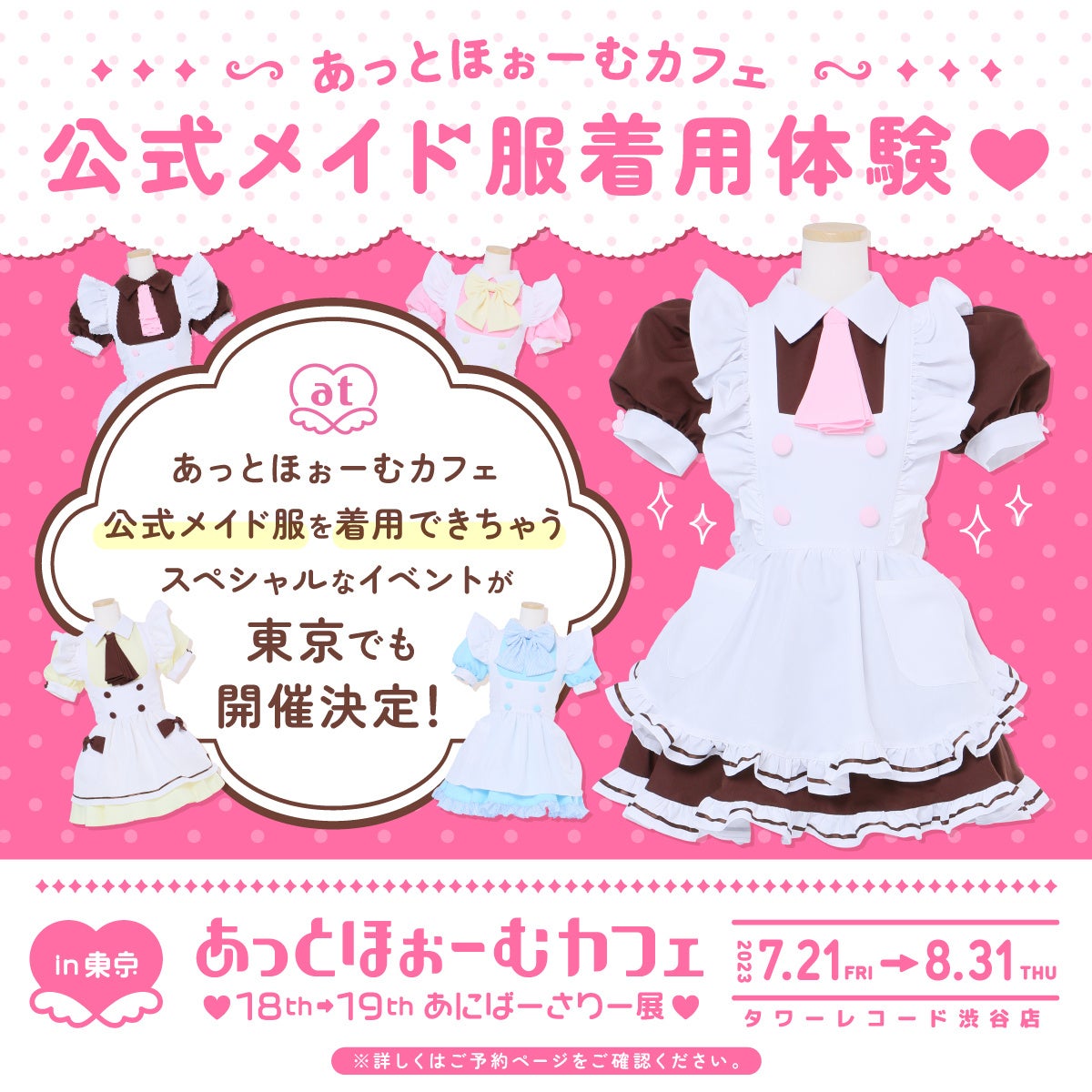 あっとほぉーむカフェ♥18th➡19thあにばーさりー展♥in東京がタワーレコード渋谷店8F ≪SpaceHACHIKAI≫て開催中!バーチャルメイドも参加!