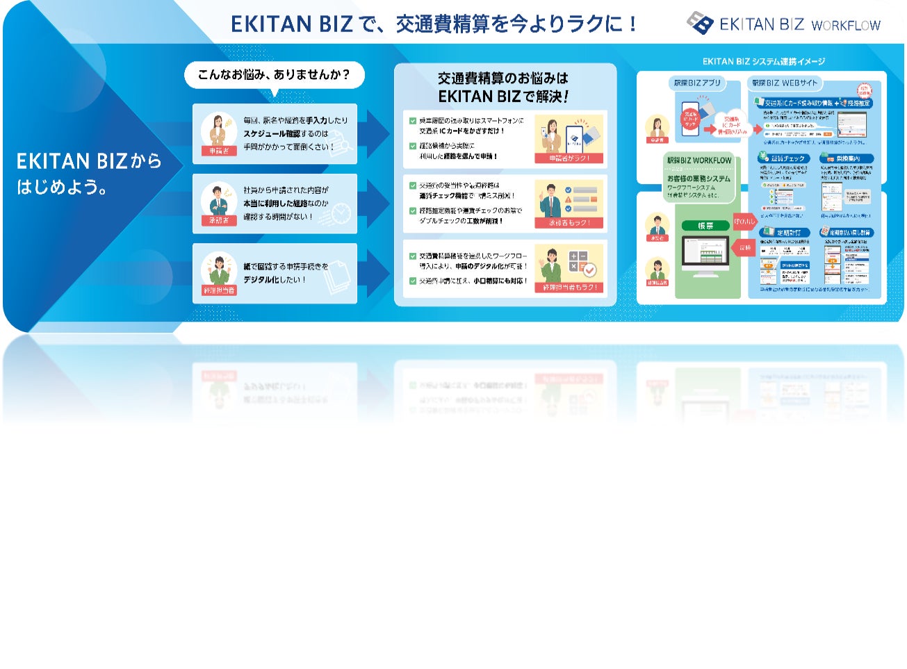 当社ブースでは、交通費/定期代精算やDX化に関する企業課題へのソリューションとして、新機能を搭載した交通費精算サービス「駅探BIZ」などを展示いたします。