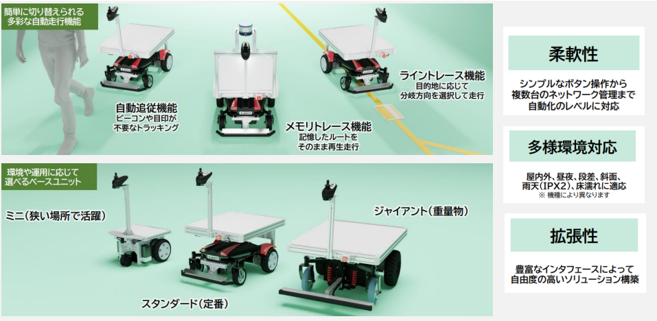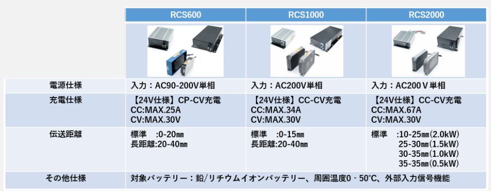 協働運搬ロボット「サウザー」にはワイヤレス充電「RCSシリーズ」の搭載が可能です。 どのタイプにもワイヤレス充電器を取り付けることができますので、自動化に大きく貢献致します。