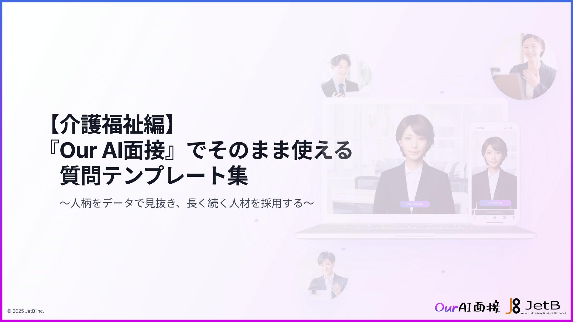 【Our AI面接】「スピード採用」と「定着人材獲得」をAI面接で同時に叶える。介護現場の負担を減らし、精度を高める「質問テンプレート集(介護福祉編)」を無料公開【JetB株式会社】