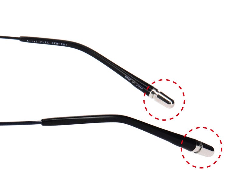 テンプル(つる)はしなやかで、360度あらゆる方向に曲がっても元に戻ります。高い形状記憶性を備えており、壊れにくさが最大の特徴です。