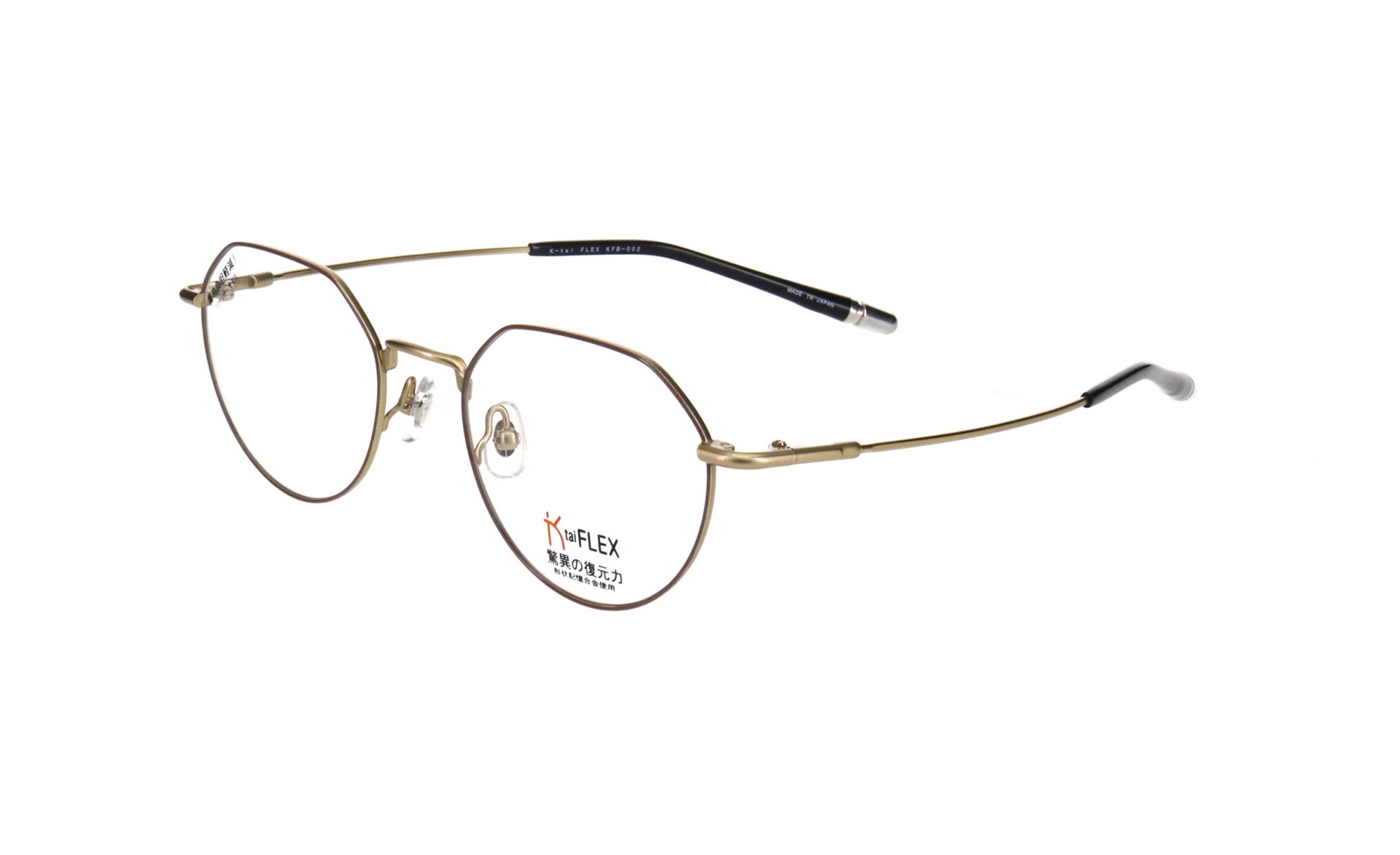 女性向けの品番「KF-014」は、ボストン型(丸みを帯びた逆三角形)とオーバル型(楕円形)を組み合わせた、最近人気が高まっている柔らかな印象の玉型。通常のボストン型よりもレンズの縦幅を抑え、オーバル型をベースに、ボストン型のやわらかなニュアンスを取り入れることで、小ぶりで顔なじみが良く、年齢を問わず使いやすいデザインに仕上げました。カラーは肌馴染みの良さにこだわり、ピンクマット、ワインマット、ブラウン・ゴールドといった柔らかな印象のニュアンスカラー3色を展開しています。