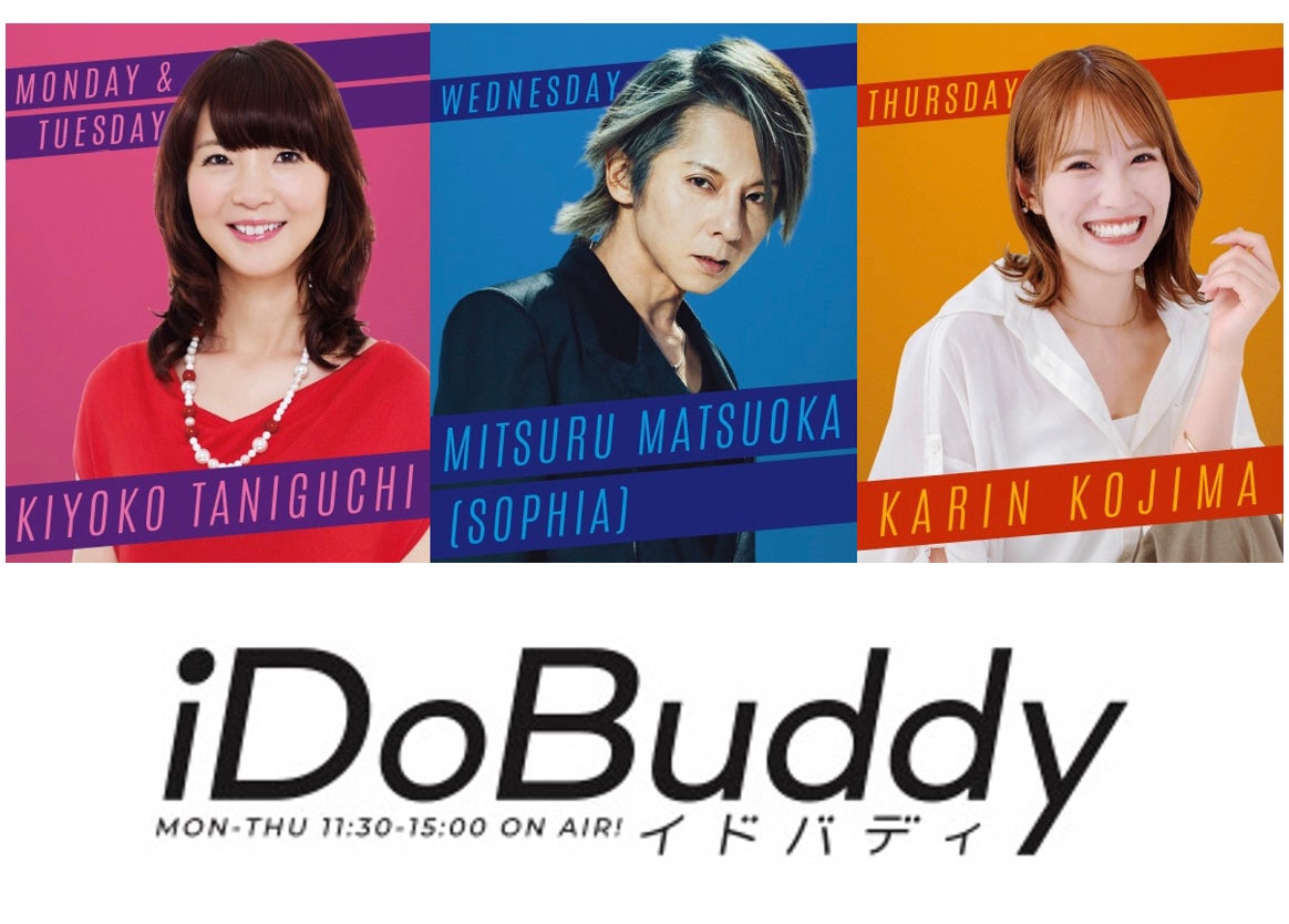 今回の改編では、昼のワイドを20年ぶりに刷新した『iDoBuddy(イドバディ)』(月〜木曜日 11:30-15:00)がスタート。SOPHIAの松岡充(水曜)、元NMB48キャプテンの小嶋花梨(木曜)、FM大阪のお昼の顔・谷口キヨコ(月・火曜日)がパーソナリティを務めます。