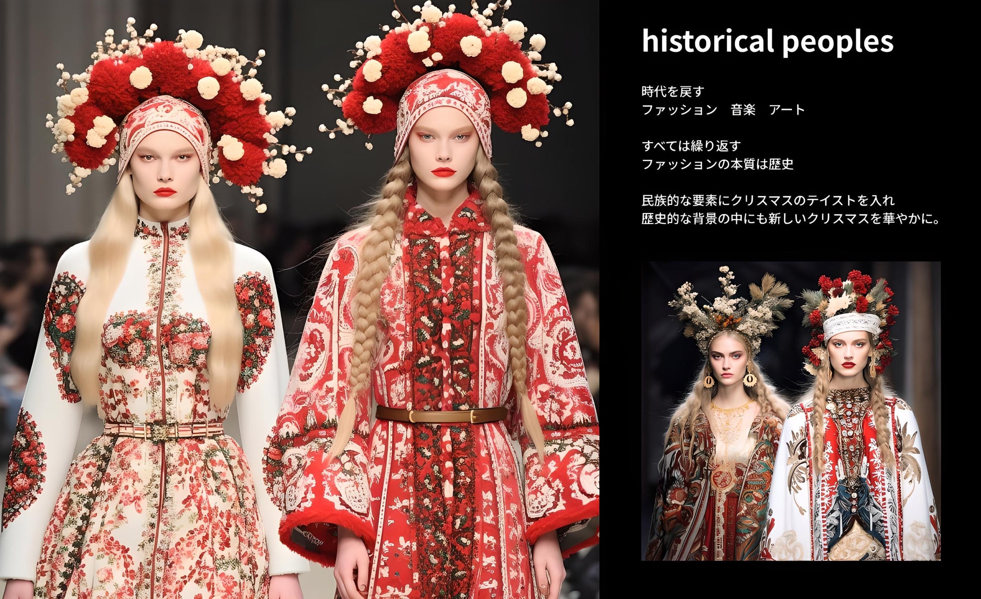 「歴史的な文脈を尊重しつつも、モダンな解釈を加えることで新しく華やかなホリデースタイルを創造しているところが印象的でした。
