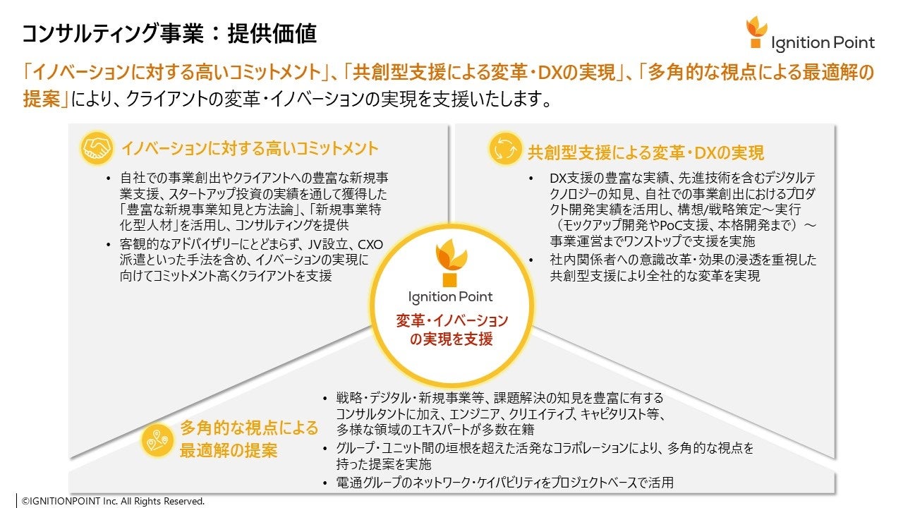 コンサルティング事業(https://www.ignitionpoint-inc.com/business/consulting/)の提供価値に関しては下記をご覧ください。