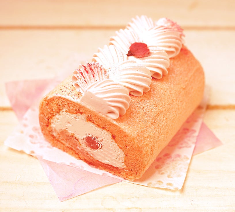 本商品は、桜の季節を感じさせる、春らしいさくら色のロールケーキです。苺とフランボワーズ風味の特製シャンティークリーム、そして桜あんを、ふんわりとしたさくら色のスポンジ生地で巻き上げました。