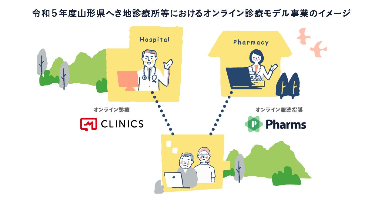 株式会社メドレー(以下、メドレー)は、この度、「令和5年度山形県へき地診療所等におけるオンライン診療モデル事業」において、NTTコミュニケーションズ株式会社と連携し、メドレーが運営するオンライン診療支援システム「CLINICSオンライン診療」および、かかりつけ薬局支援システム「Pharms」の提供や運用コンサルティング等を通じた支援を開始しました。