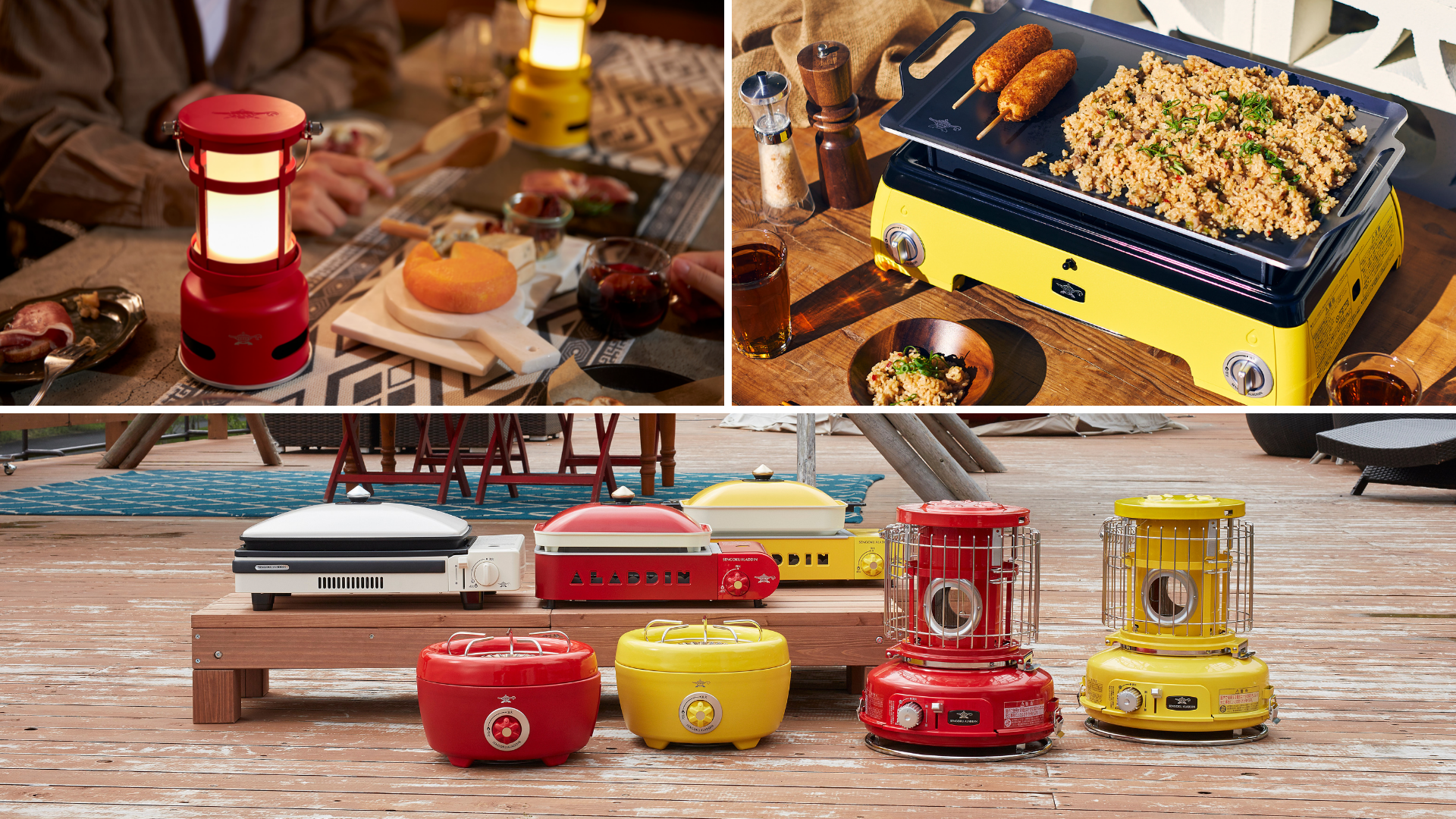 今回初出展となるアラジンのブースでは、遊び心のあるポップなカラーラインナップが特徴で、アウトドアシーンで人気のブランド「Sengoku Aladdin」のポータブルガスシリーズの展示・販売を行います。そのほか「Aladdin」の人気商品で、グランピングやアウトドアシーンなどで場所を選ぶことなく持ち運べる「ランタンスピーカー」もご用意いたします。さらに、会期中商品をお買い上げのお客様には「オリジナルトング」をプレゼント。