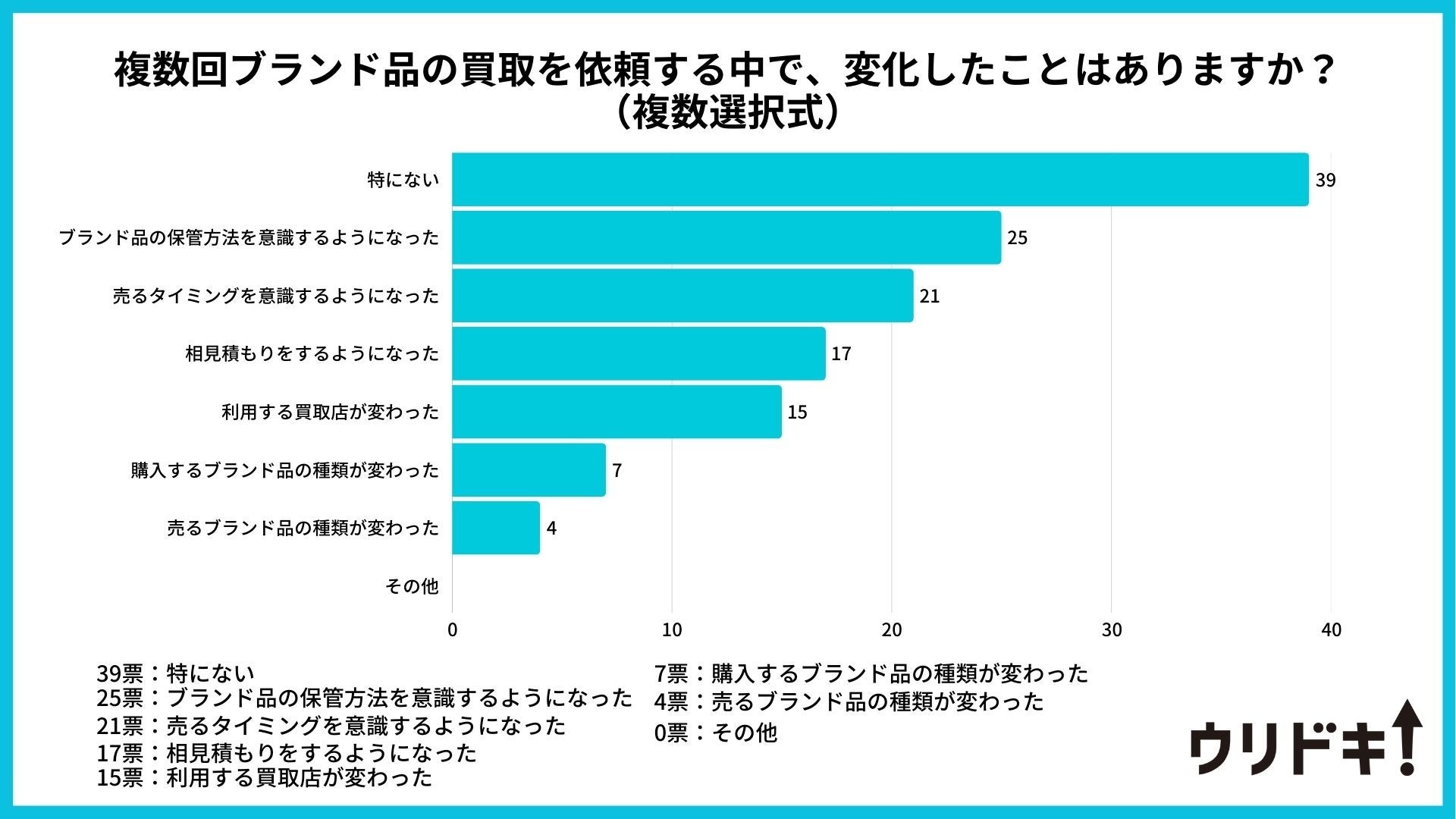 設問17:複数回ブランド品の買取を依頼する中で、変化したことはありますか?(複数選択式)