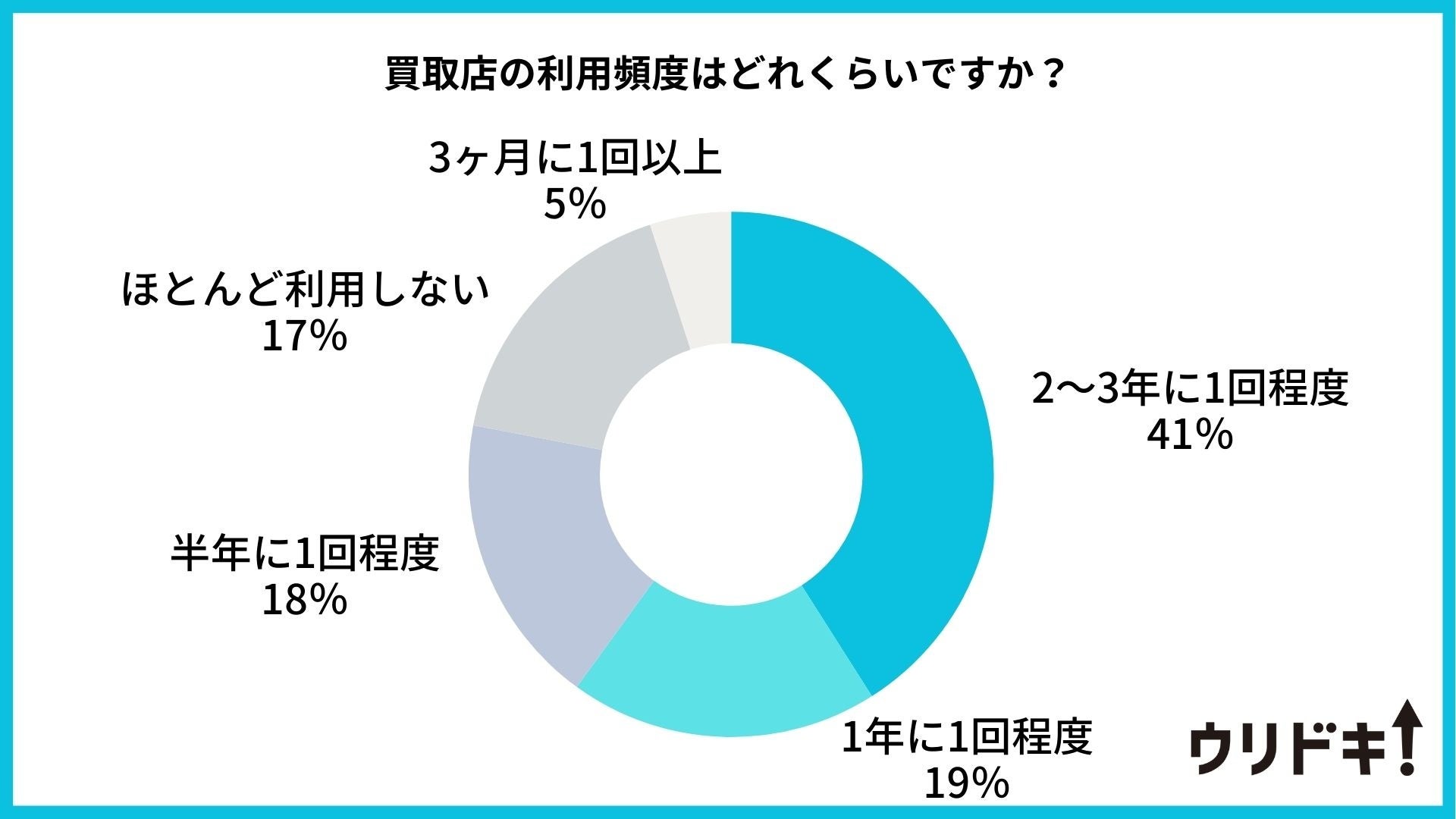 『買取店の利用頻度』について、「2~3年に1回程度」の意見が多い結果となりました。