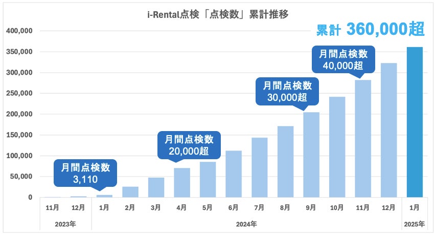 月間点検数は13倍に増加し、累計点検数は36万件を突破